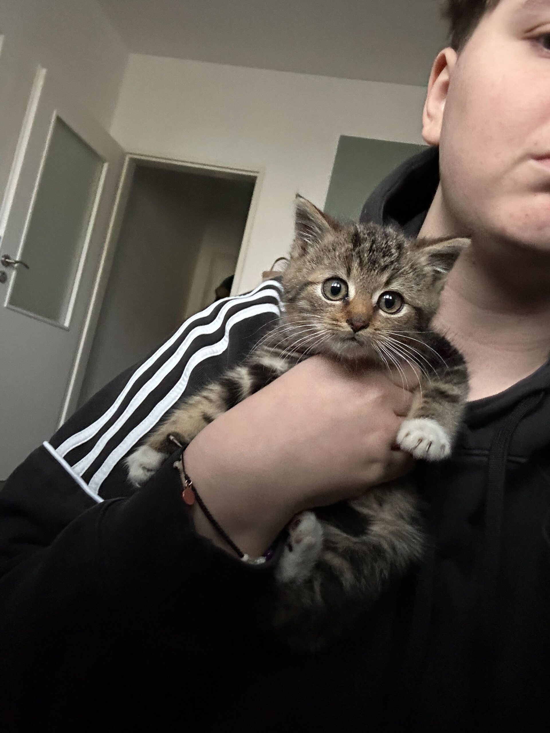 Lidé, u kterých se koťátko objevilo, jej neznali. A tak se prcek dostal k nám, do útulku. Vystrašený, zmatený, s očima, které se snažily pochopit, co se vlastně stalo.